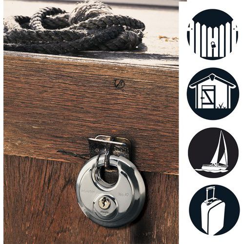 | Nombre del producto | Candado de llave en acero inoxidable, Color: Plata, Arco Ø: 9 mm, Altura: 1.6 cm, Nº de pasadores: 4 |