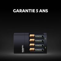 El cargador de pilas de alta velocidad cuenta con una garantía Duracell de 5 años.
