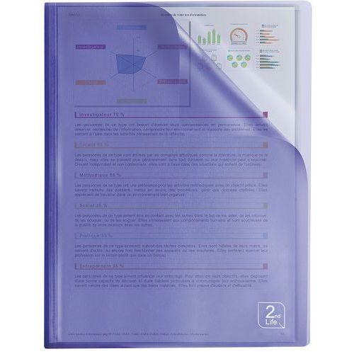 Carpeta de fundas translúcida para formato A4. Surtido de 5 colores (verde, gris, violeta, rojo y azul). Las tapas translúcidas aportan visibilidad para ayudarle a organizar sus documentos. Grosor de 0,5 mm.