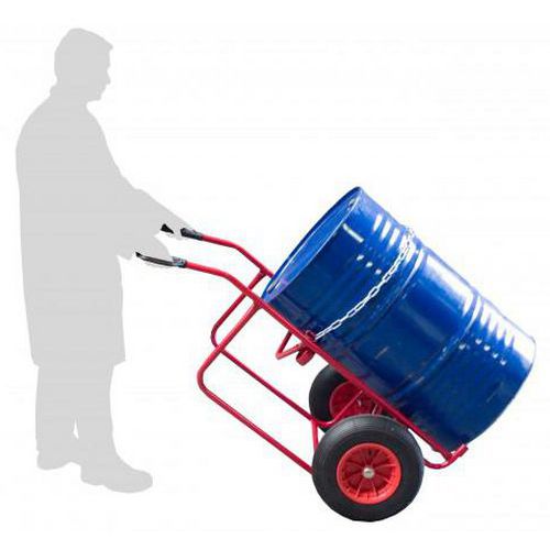 | Nombre del producto | Carretilla para bastidores para bidones con ruedas neumáticas, Carga: 250 kg, Anchura total: 480 mm |