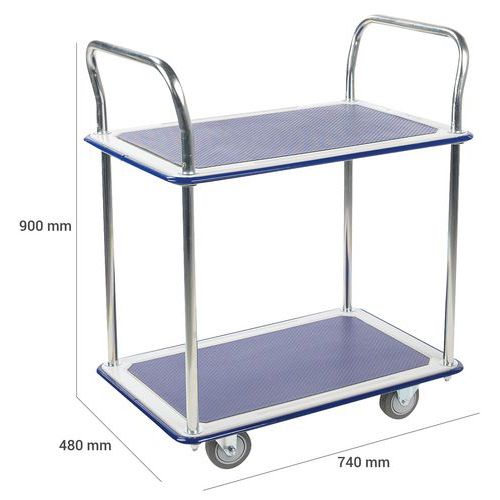 | Nombre del producto | Carretilla con bandejas de metal, Rueda Ø: 100 mm, Carga: 200 kg, Altura total: 900 mm, Anchura total: 480 mm |