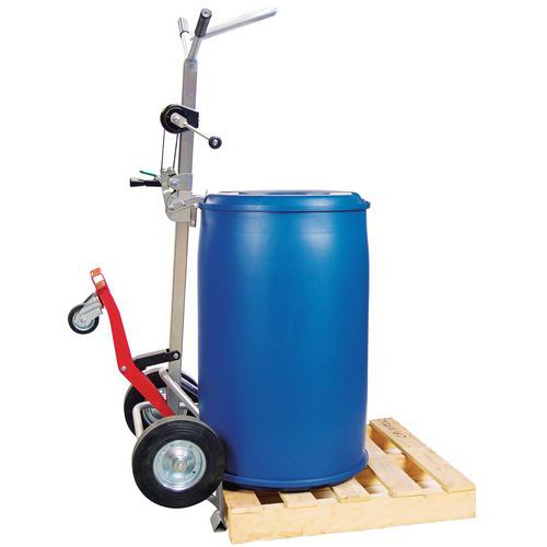 | Nombre del producto | Carretilla de acero para bidones 350 kg, Carga: 350 kg, Modelo: Automático, Anchura total: 555 mm |