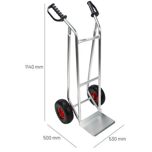 | Nombre del producto | Carretilla de aluminio para 200 kg, Carga: 200 kg, Exterior de la rueda: Neumática a prueba de pinchazo |