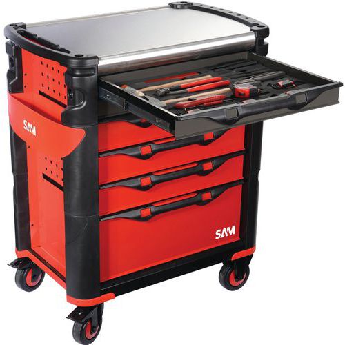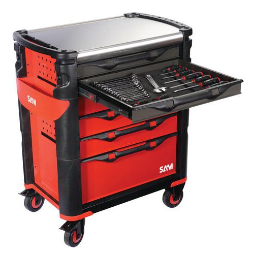 | Nombre del producto | Carro auxiliar 6 cajones composición 200 herramientas, Carga maxi balda central: 30 kg, Altura total: 1000 mm |