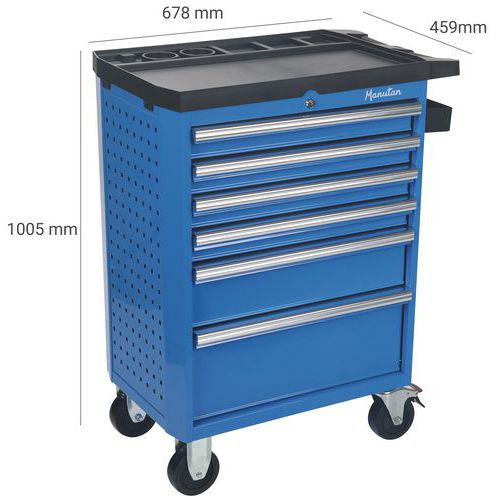 | Nombre del producto | Carro auxiliar 6 cajones con bandeja y 111 herramientas, Carga máx.: 300 kg, Carga maxi balda central: 30 kg |
