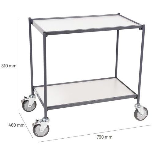 | Nombre del producto | Carro auxiliar con bandejas de madera, Rueda Ø: 125 mm, Carga: 200 kg, Altura total: 810 mm |