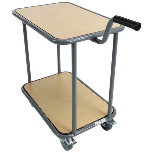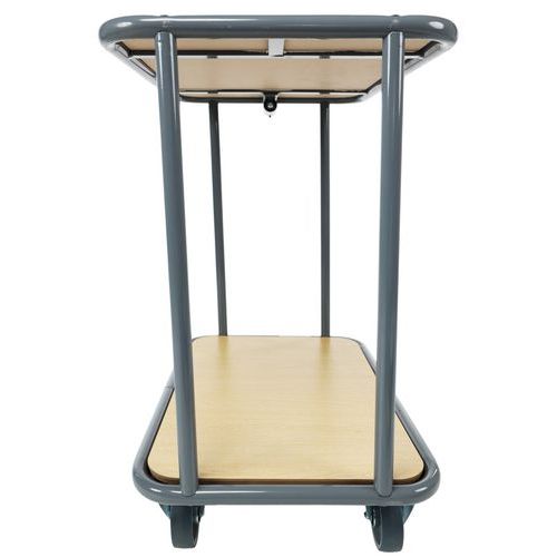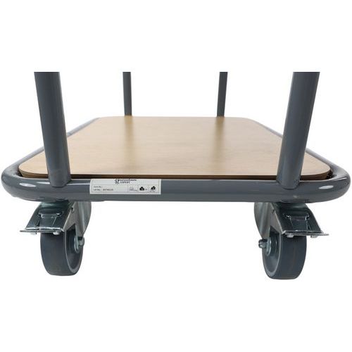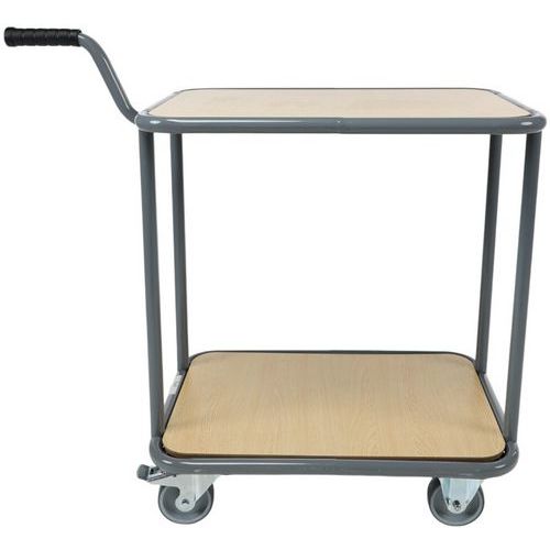 | Nombre del producto | Carro con 2 bandejas de madera, Rueda Ø: 100 mm, Carga: 200 kg, Altura total: 1000 mm, Anchura total: 400 mm |