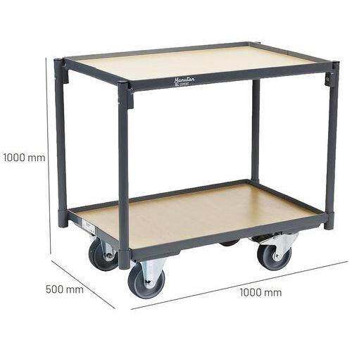 | Nombre del producto | Carro con bandejas de madera para cajas, Carga: 250 kg, Altura total: 1000 mm, Anchura total: 500 mm |