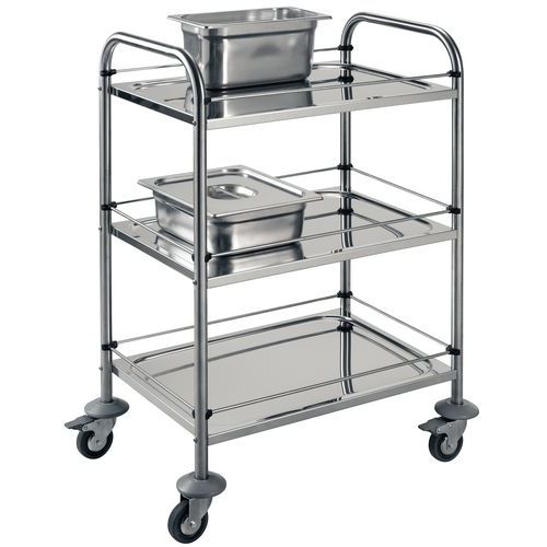 | Nombre del producto | Carro de acero inoxidable, Carga: 60 kg, Altura total: 940 mm, Anchura total: 470 mm, Longitud total: 720 mm |
