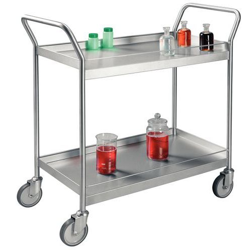 | Nombre del producto | Carro de acero inoxidable con barandillas, Carga: 300 kg, Altura total: 1035 mm, Anchura total: 510 mm |