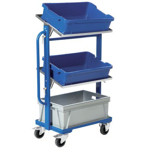 | Nombre del producto | Carro de acero para cajas norma Europa, Carga: 150 kg, Altura total: 1100 mm, Anchura total: 415 mm |
