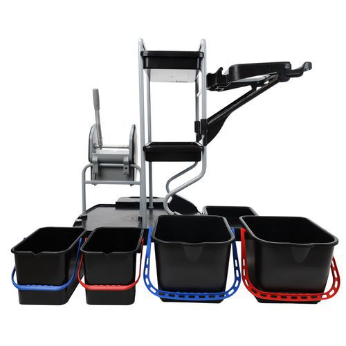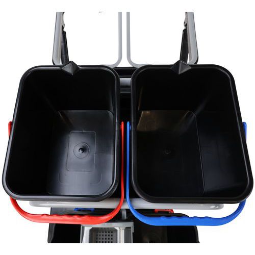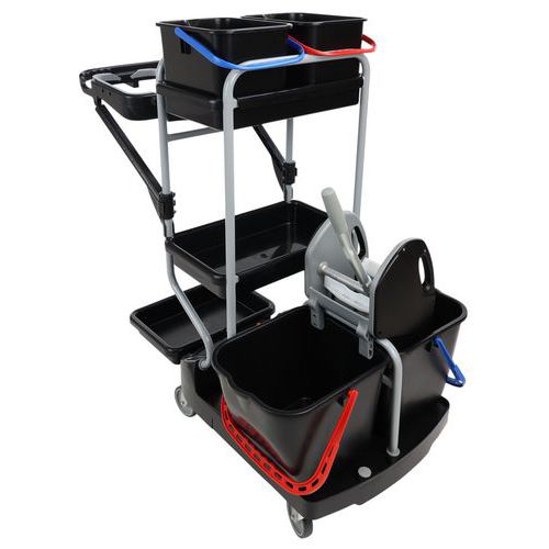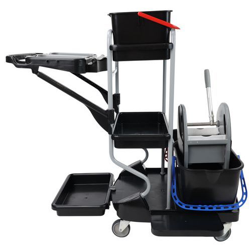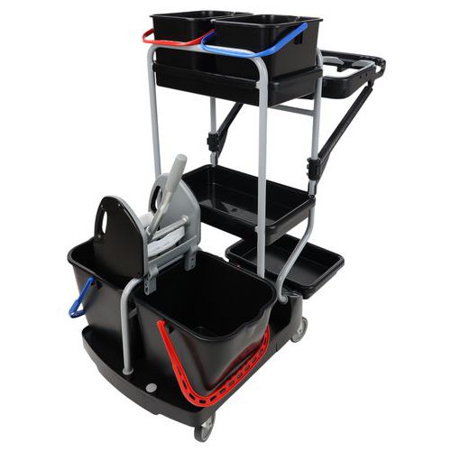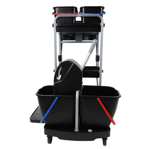 | Nombre del producto | Carro de limpieza con portabolsa, Capacidad: 15 L, Color: Negro/gris, Altura: 118 cm, Ancho: 76 cm |