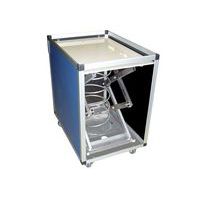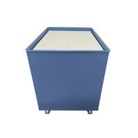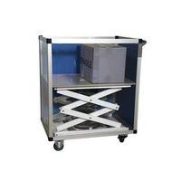 Carro de nivel constante con fondo móvil mediante sistema de pantógrafo con resorte. Fondo reforzado con una placa de polipropileno de 8 mm de grosor. Resistente a los golpes, a los cambios de temperatura, al agua y a la mayoría de aceites, grasas y productos químicos. Los modelos de 100 kg están equipados con un soporte de refuerzo de chapa galvanizada. Ruedas con banda de goma Ø 80 mm, 2 fijas y 2 pivotantes con freno.