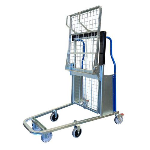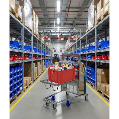 El carro de nivel constante galvanizado FIMM está diseñado para la preparación de pedidos y la manipulación de paquetes, además de reducir el esfuerzo en el puesto de trabajo. Su fondo móvil con resortes mantiene automáticamente la carga a la altura del agarre, lo que evita flexiones repetidas y mejora la comodidad de uso. La bandeja abatible y el diseño encajable permiten un importante ahorro de espacio, lo que resulta ideal para almacenes, depósitos y talleres. El acabado galvanizado ofrece una excelente resistencia a la corrosión para un uso intensivo en entornos logísticos. El carro de nivel constante galvanizado FIMM cuenta con ruedas pivotantes, dos de ellas con freno, que cumplen con la norma EN 1757, lo que le confiere una gran maniobrabilidad y seguridad durante las operaciones de recogida, carga y descarga. Estos carros de nivel constante galvanizados pueden utilizarse en sectores como la logística, la distribución a gran escala, los servicios de envío y recepción, los taller