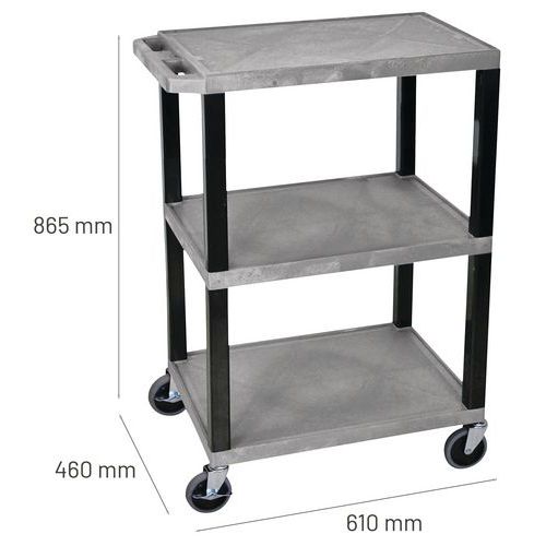 Carro de plástico reciclado - 3 bandejas - Altura 108 cm - Capacidad 180 kg