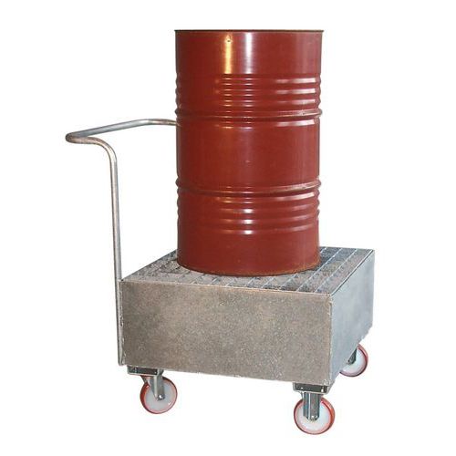 Carro colector metálico con asa de guiado para facilitar el transporte. Rejilla de acero galvanizado en caliente, desmontable. Se pueden manipular vacíos mediante apilador y transpaleta. 4 ruedas de poliamida: 2 ruedas fijas y 2 pivotantes, 1 de ellas con freno. Pintura lacada gliceroftálica. Galvanizado en caliente. Fabricado en la UE Carga estática máxi (kg) : 800 Garantía al cliente : 3 años