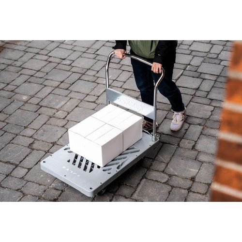 Este carro con plataforma, con una capacidad de carga de 330 kg, permite manejar cargas pesadas con facilidad y le ofrece una solución fiable para sus necesidades de transporte.