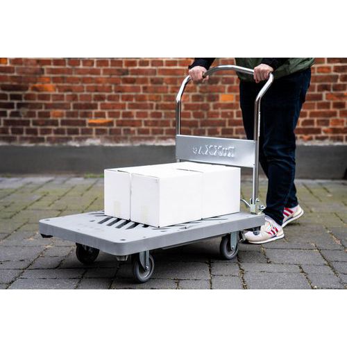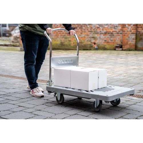 Carro con plataforma Dandy de RuXXac, con freno y barra de empuje abatible.