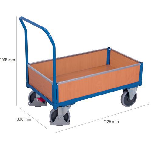 Carro ergonómico con pared de madera desmontable, Rueda Ø: 200 mm, Carga: 500 kg, Altura total: 1015 mm