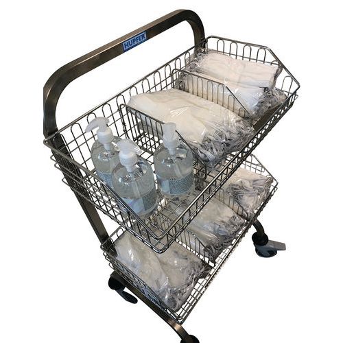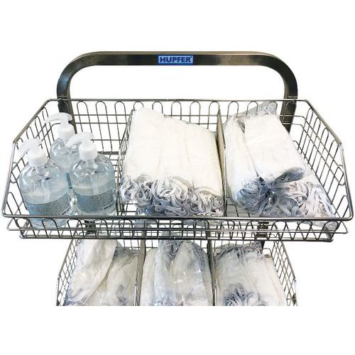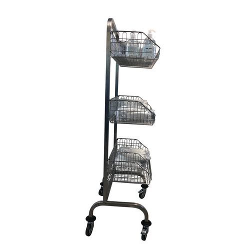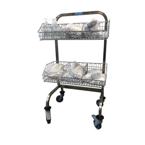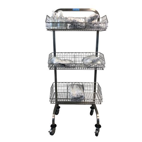 Equipado con 2, 3 o 4 cestas de acero inoxidable para el transporte, almacenamiento y distribución de productos estériles en embalajes flexibles.