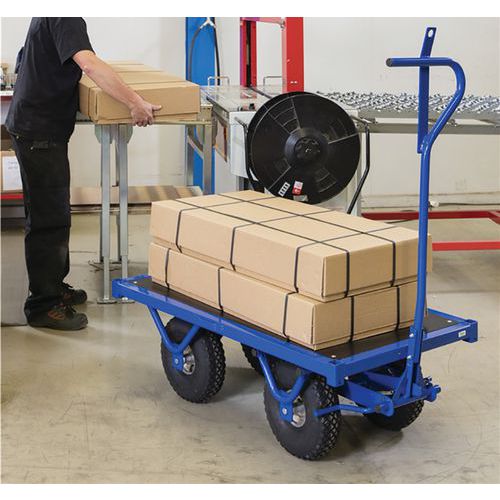 | Nombre del producto | Carro para carga pesada, Carga: 650 kg, Exterior de la rueda: Neumática, Anchura Útil Plataforma: 690 mm |
