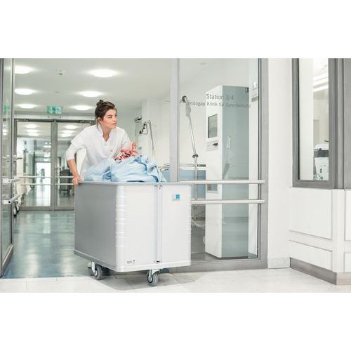 El carro con fondo con desplazamiento vertical mantiene los productos a una altura de agarre constante. Gracias al fondo vertical móvil, la mercancía se mantiene a la misma altura. Gran comodidad durante la conducción gracias a las ruedas de goma blandas que no dejan marcas, los rodamientos de bolas y las pantallas de protección. Disposición central de las ruedas para facilitar el almacenamiento en espacios reducidos. Incluso si el carro se carga unilateralmente, no vuelca. Borde superior de perfiles macizos con revestimiento sintético. Rodamientos de rodillos y guardacables.