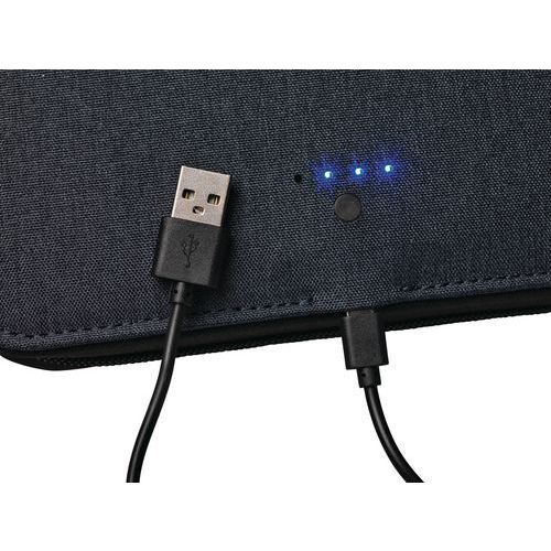 Cartera de viaje con batería externa, Color: Azul, Ancho: 14 cm, Altura: 2.8 cm, Profundidad: 24.2 cm