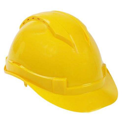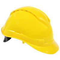 Casco de seguridad convencional con 6 puntos de fijación. El casco de obra blanco es un elemento indispensable en los trabajos pesados. Este moderno casco con visera dispone de un arnés interno ajustable. Su resistente diseño de seguridad le protegerá de golpes y condiciones climáticas adversas. Su carcasa ventilada disipa el calor y proporciona un mayor nivel de comodidad.