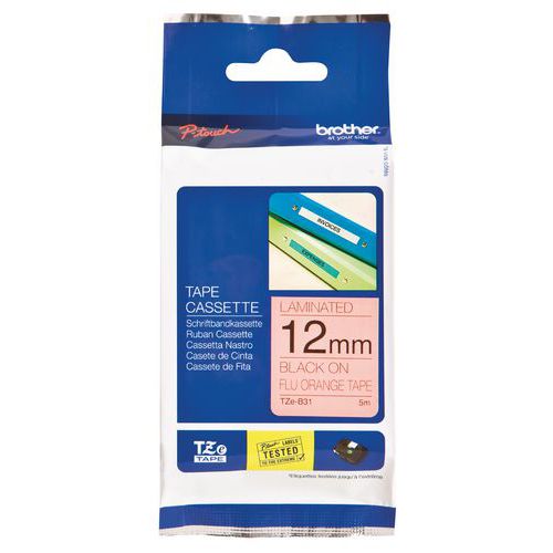 Cassette de cinta para etiquetadoras Brother, Fondo color: Anaranjado, Tipo de producto: TZE-B31