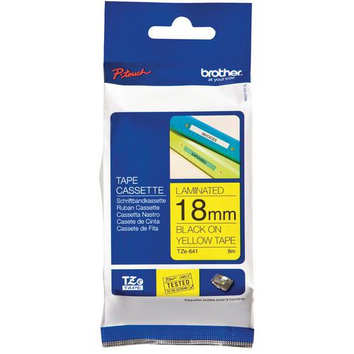 Cassette de cinta para etiquetadoras Brother, Fondo color: Amarillo, Tipo de producto: TZE-641