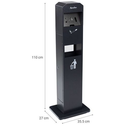 Cenicero-papelera o cenicero en columna sobre base Manutan Expert, Capacidad cenicero: 2 L