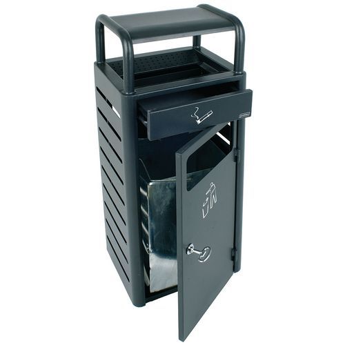| Nombre del producto | Cenicero papelera, Capacidad cenicero: 2.3 L, Abertura: Ranurado, Papelera capacidad: 20 L, Color: Antracita |