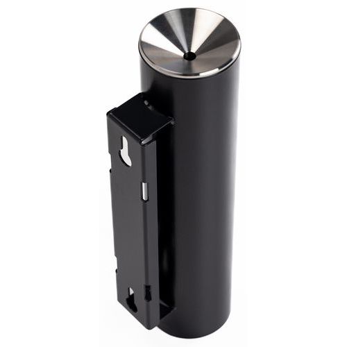 Cenicero protegido de acero, equipado con un inserto y de una cerradura triangular (1 llave). Fabricación de chapas de acero galvanizado de alta calidad con revestimiento de polvo de poliéster epoxi. Diámetro de apertura de 9 mm con inserto estanco. Embudo INOX. Fijación mural o sobre poste. Sin liberaciones de humo, por tanto, sin molestias para las personas en las inmediaciones.