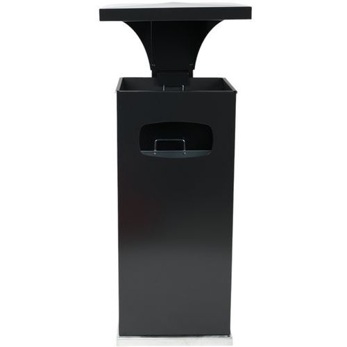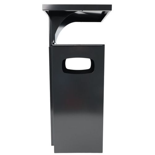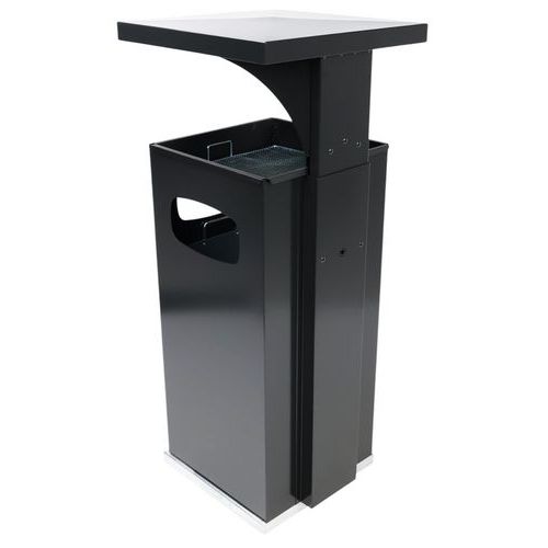 Cenicero con papelera Manutan Expert con techo reforzado desmontable y 3 aberturas. Cubo interior de metal desmontable. Con cubeta de recogida negra y filtro cromado. Fácil de usar.