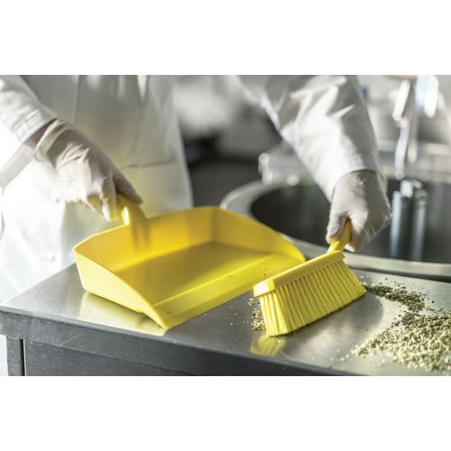 Cepillo de fibra flexible con mango ergonómico. Junto con el recogedor de polvo permite retirar las partículas finas. Fabricado en la UE