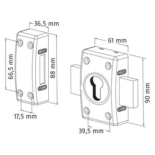 | Nombre del producto | Cerradura básica para cilindro europeo, Caja ancho: 61 mm, Caja altura: 90 mm, Pestillo ancho: 36.5 mm |