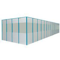 Los cerramientos pueden fijarse bajo un techo ya existente o pueden encargarse con un techo que se ofrece como elemento complementario. Indique en su pedido si desea montantes blancos RAL 9016. Es obligatorio suministrar el plan de implementación y el de instalación eléctrica de su proyecto de recinto. Si desea otras dimensiones, colores o montaje in situ: consúltenos.