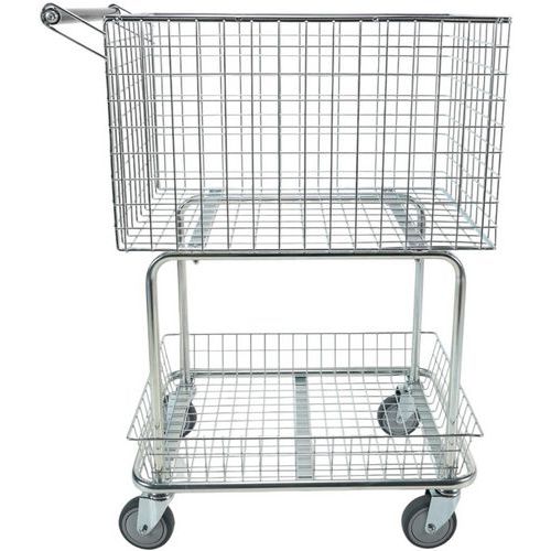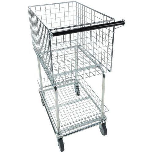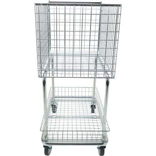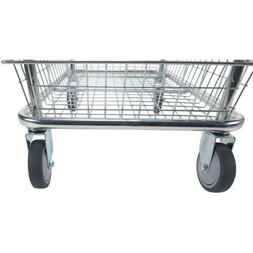 | Nombre del producto | Carro de malla con dos cestas, Rueda Ø: 100 mm, Carga: 100 kg, Altura total: 950 mm, Anchura total: 410 mm |