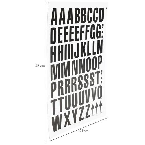 Cifras y letras magnéticas, Altura: 43 cm, Ancho: 210 mm, N.º de hojas: 1, N.º de etiquetas/plancha: 52