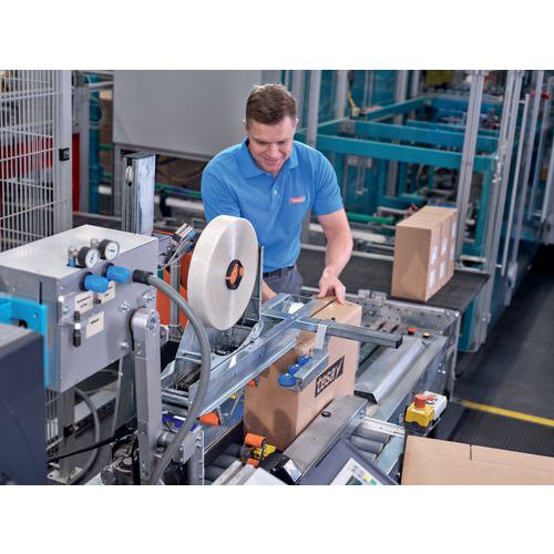 Tesa® 60418 es una cinta de precintado duradera para cajas de cartón de peso ligero y medio con un 60 % de contenido reciclado. Tesa® 60418 consta de una masa adhesiva de goma sintética fundida en caliente y un soporte de poliéster muy fino, compuesto por un 85 % de desechos posconsumo reciclados. Gracias a las propiedades superiores del soporte, tesa® 60418 es fina y flexible, además de resistente a los desgarros. Se caracteriza por su baja fuerza de desenrollado y su gran adherencia inmediata, lo que la hace ideal para procesos automatizados. Tesa 60418 es una opción excelente para embalajes de gran volumen, en los que la eficacia y la durabilidad son factores cruciales.