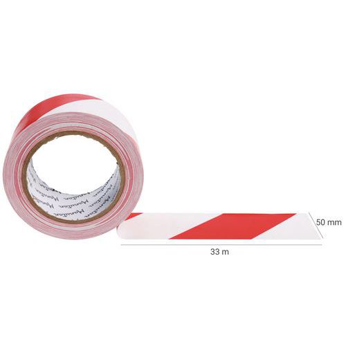 Cinta de marcado, Material: PVC, Longitud: 33 m, Ancho: 50 mm, Color: Rojo/blanco, Espesor: 0.16 mm