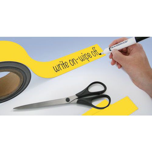 Cinta magnética borrable para marcado 10 m, Color: Amarillo, Modelo: Etiqueta magnética, Anchura total: 30 mm