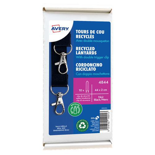 | Nombre del producto | Cinta para cuello con tarjeta reciclada con doble mosquetón, Embalaje reciclable: Sí - 100% |