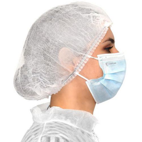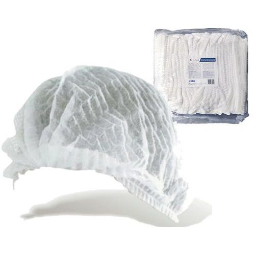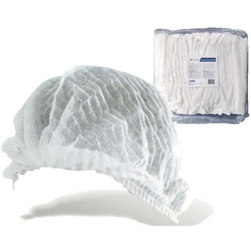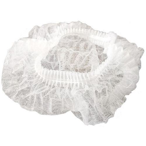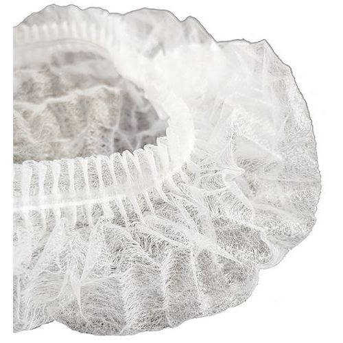 - Cofia redonda y blanca de polipropileno no tejido, sin látex, para el pelo.