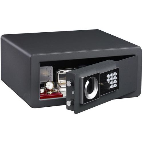- Caja fuerte antirrobo monobloque protegida gracias a 2 pestillos de cierre.