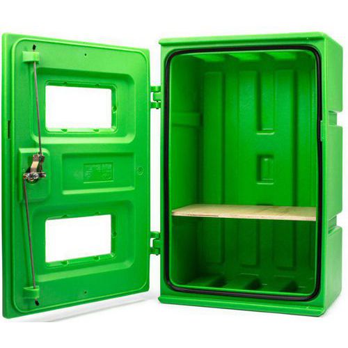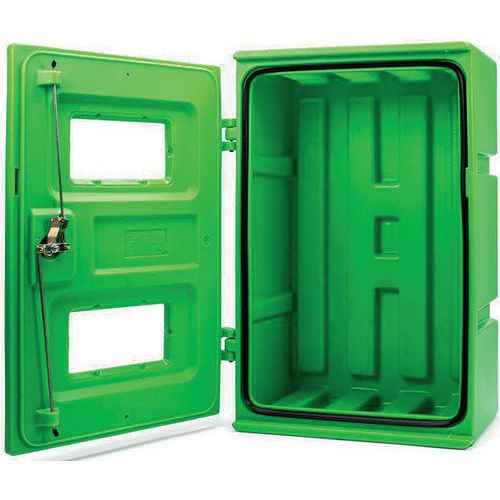 | Nombre del producto | Cofre plástico para ARI, Material: Polietileno de alta densidad, Color: Verde, Para extintor peso: 9 kg |