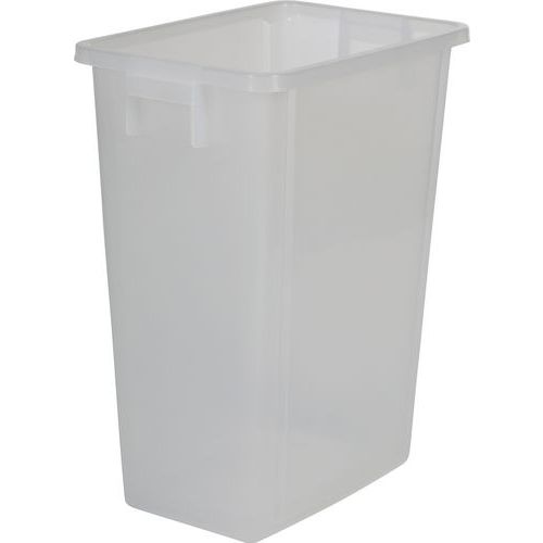 Colector rectangular que permite una utilización en espacios estrechos. Las asas facilitan la manipulación. Apilable para un almacenamiento que no ocupa mucho espacio. Fácil de limpiar.