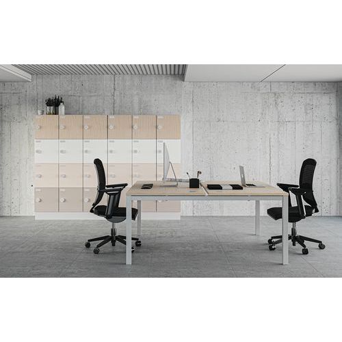 Casillero ideal para guardar objetos profesionales o personales. Fabricado en paneles de melamina de 16 mm de espesor. Cantos de ABS resistentes a golpes de 2 mm. Tamaño de las casillas: 42,5 x 37 x 37 cm. Puerta equipada con tirador con cierre por código, bisagras de cierre amortiguado y portaetiquetas. Casillero equipado con patas ajustables en altura, zócalo de ajuste de altura disponible como opción. Diseñado para fomentar el trabajo flexible en la oficina y el coworking. Trabaje con total movilidad y cambie de sitio fácilmente.