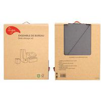 Conjunto de escritorio Reborn de SIGN. Fabricado con papel y cartón reciclado + poliuretano. 4 accesorios: guardadocumentos, bote de lápices, bandeja para documentos A4 y clasificador de cartas.