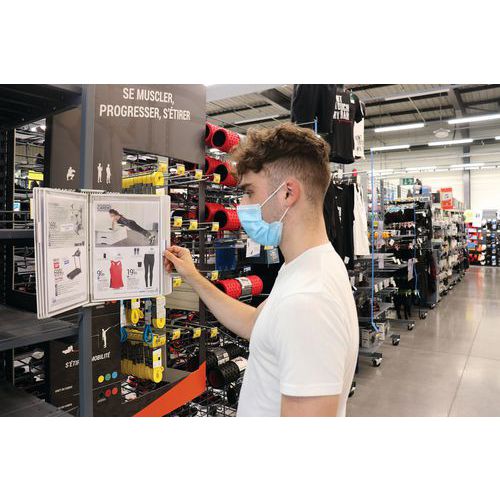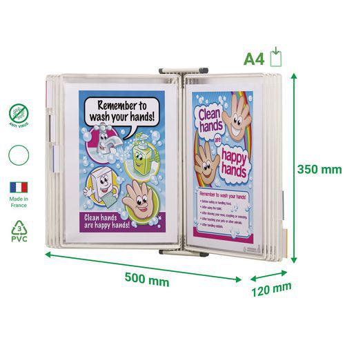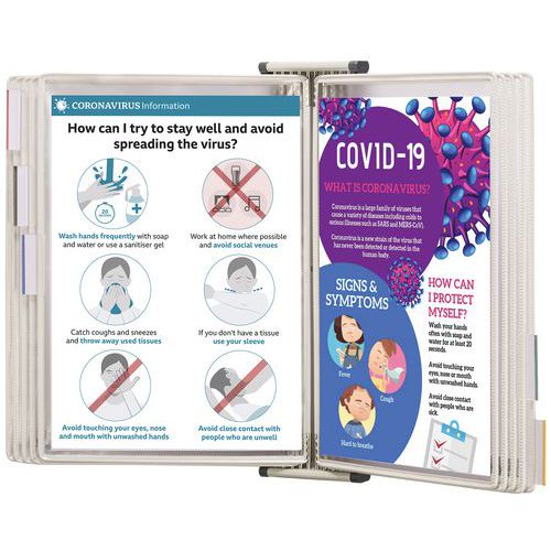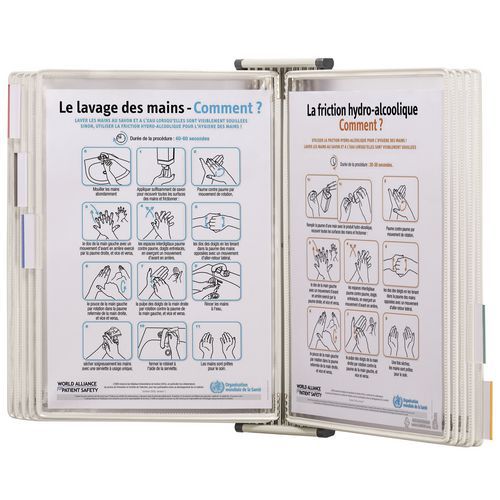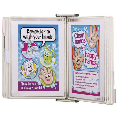 Diseñado para presentar y organizar información en papel en lugares donde la proliferación de las bacterias presentan un riesgo.